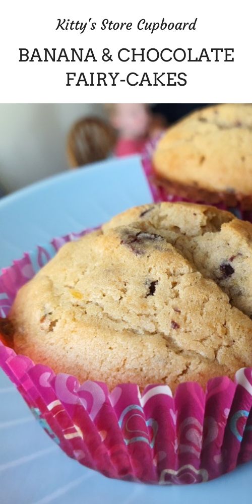 These little cakes are yummy and a good use of squidgy bananas. The recipe is based on Nigel Slaters recipe for a banana loaf with dark chocolate and dark muscavado sugar, but doctored to make nice light little ‘fairy cakes’.